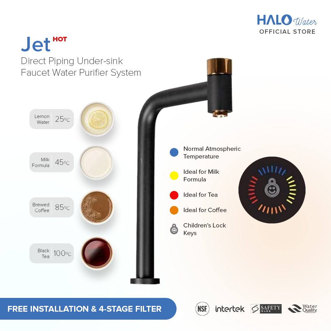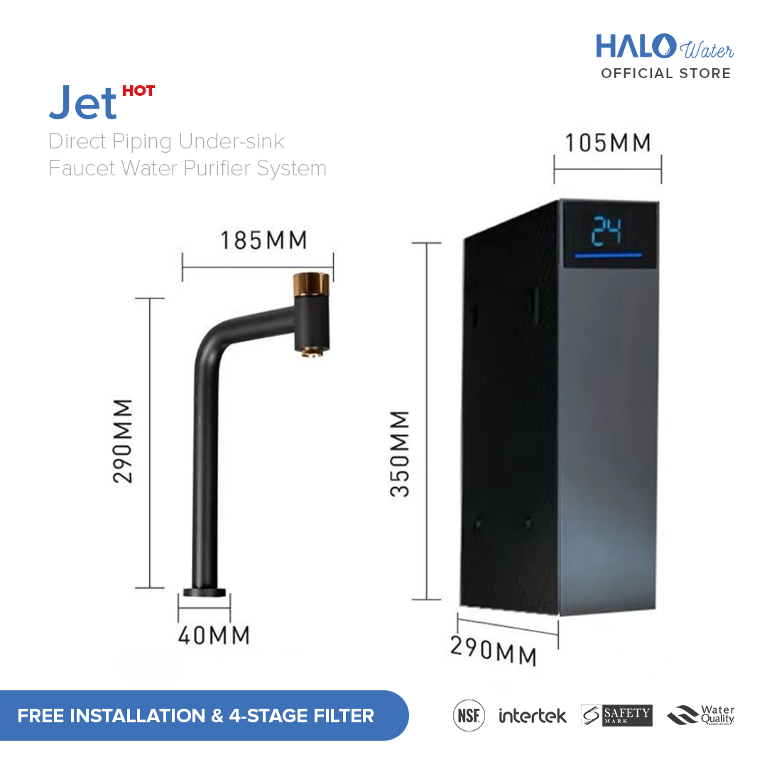 Discover the ultimate in water purification with the Halo Jet Hot Water Purifier, an Instant-heating Pipeline water dispenser, a specially designed 4 stages filtration system for purification of your water source that is fed to direct piping water dispenser units.
