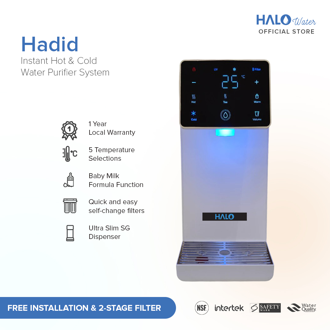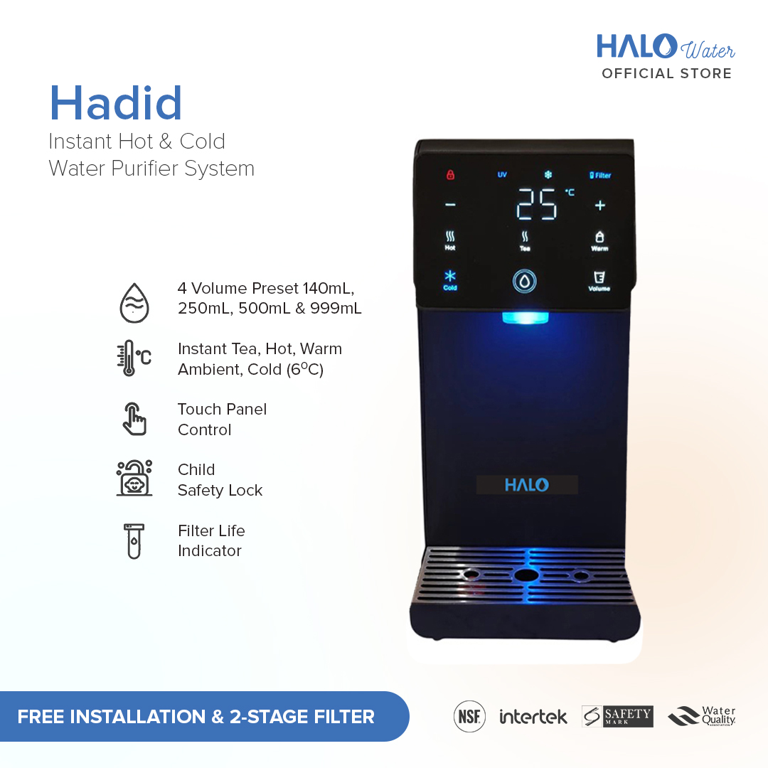 The Hadid features Enhanced Efficiency technology. It dispenses hot and cold water significantly faster, has a more durable internal build, and uses a revised “Smart Touch” interface that is more responsive than previous generations.