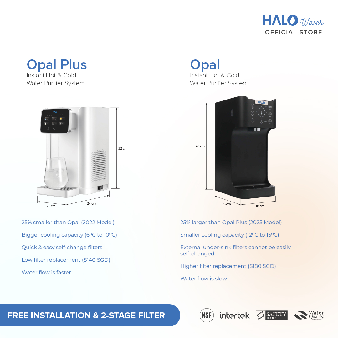 OPAL Plus (2024 model) is one of the Smallest Size, High-End, Full-Function, Hot and Cold, Smart Touch, Direct Piping, Tankless water purifier or water dispenser in the market.